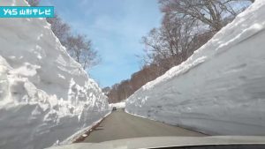 月山の雪の回廊、高さ9.4m 道路は来月開通