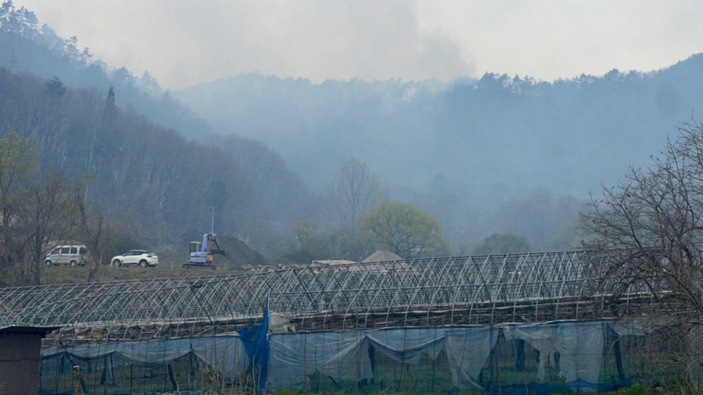 上山市で林野火災 消火活動続く 下草など約8ヘクタール焼ける