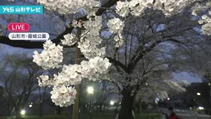 山形のサクラ満開を発表 観測史上3番目の早さ 霞城公園ではライトアップ始まる