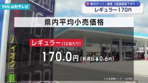 山形県内レギュラーガソリン平均小売価格170円 3週連続の値下がり