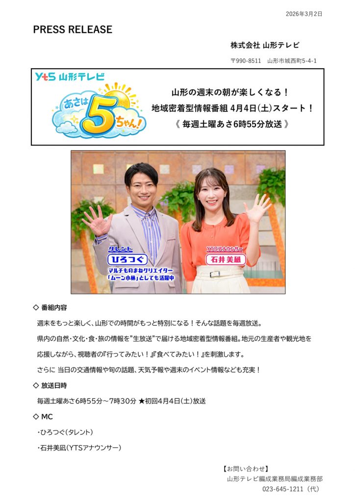 週末をもっと楽しく、山形での時間がもっと特別になる!そんな話題を毎週放送。