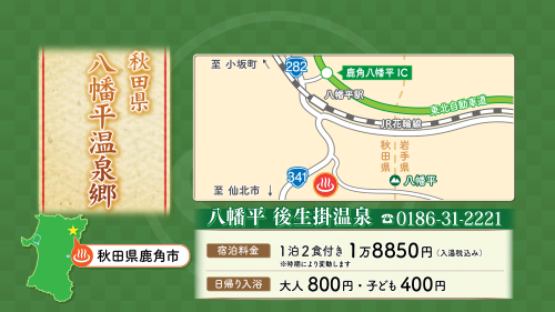 アクセス:東北自動車道 鹿角八幡平ICから車で約45分