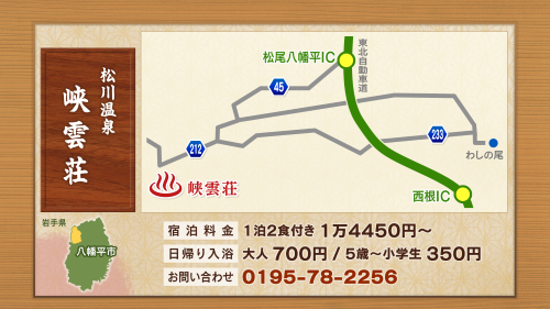 アクセス:東北自動車道松尾八幡平 IC から車で 約25分