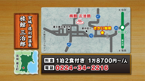 住所:宮城県刈田郡蔵王町遠刈田温泉本町 3