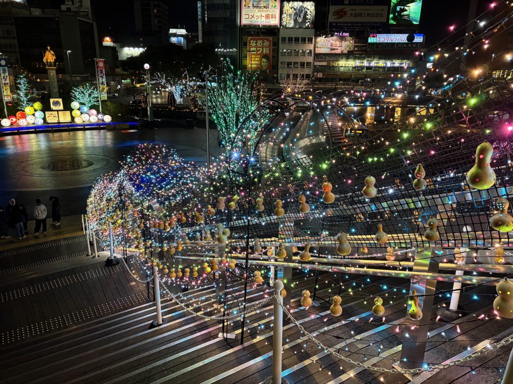 岐阜駅前はちょうどイルミネーションの時期でした