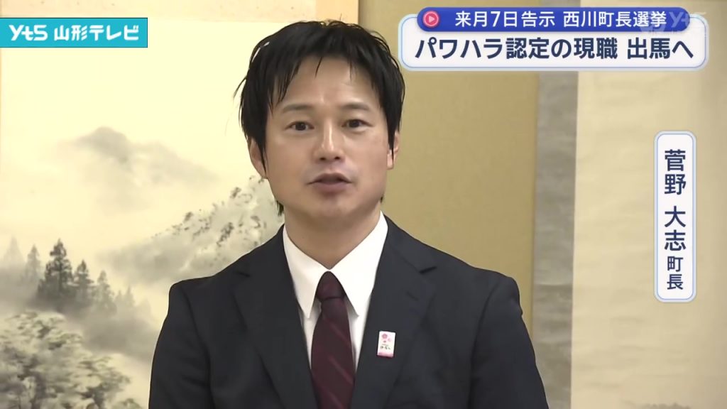 パワハラ問題で議会から問責決議を受けた西川町の菅野町長が町長選への出馬を表明、町民に信を問う構え
