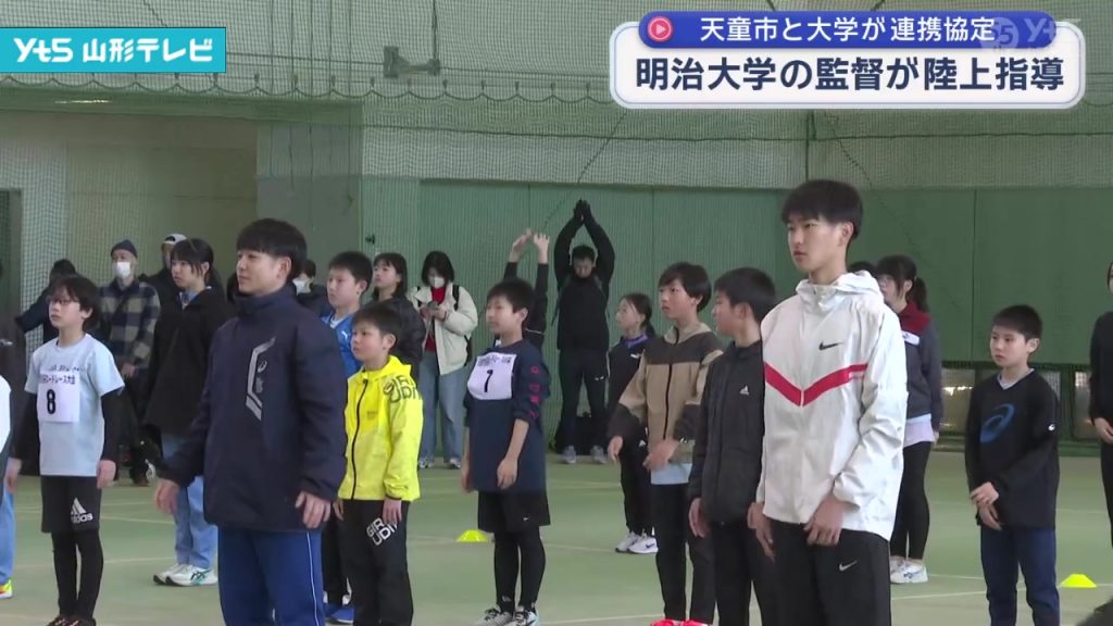 天童市で小中学生を対象にした陸上教室 明治大学競走部の監督が指導