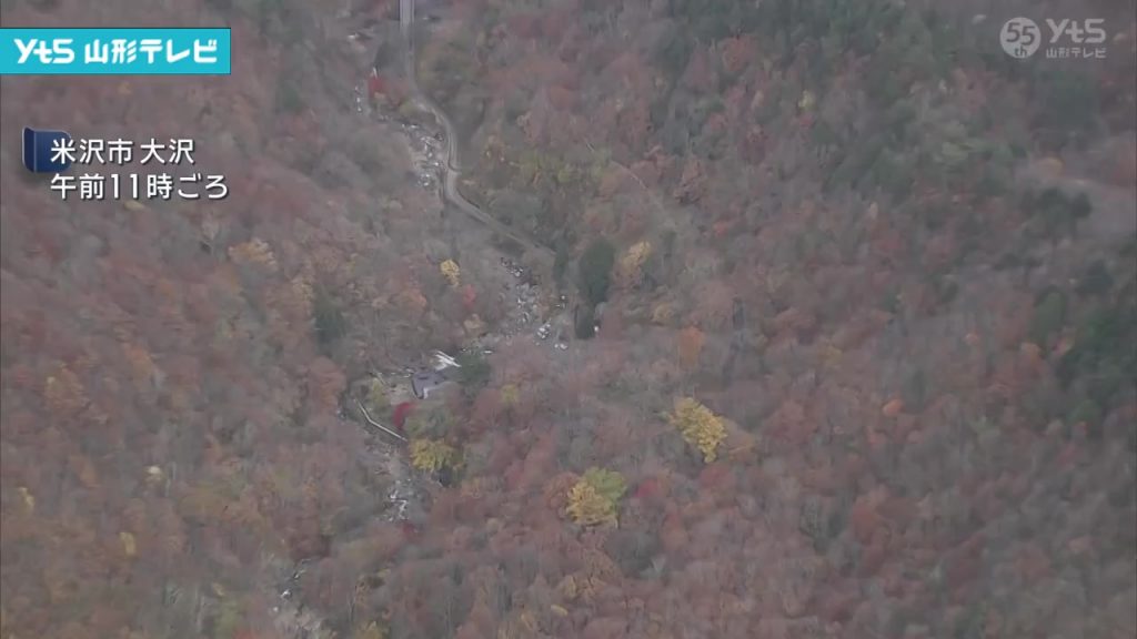 けさ7時半過ぎ 米沢市大沢にある滑川温泉の旅館「福島屋」で