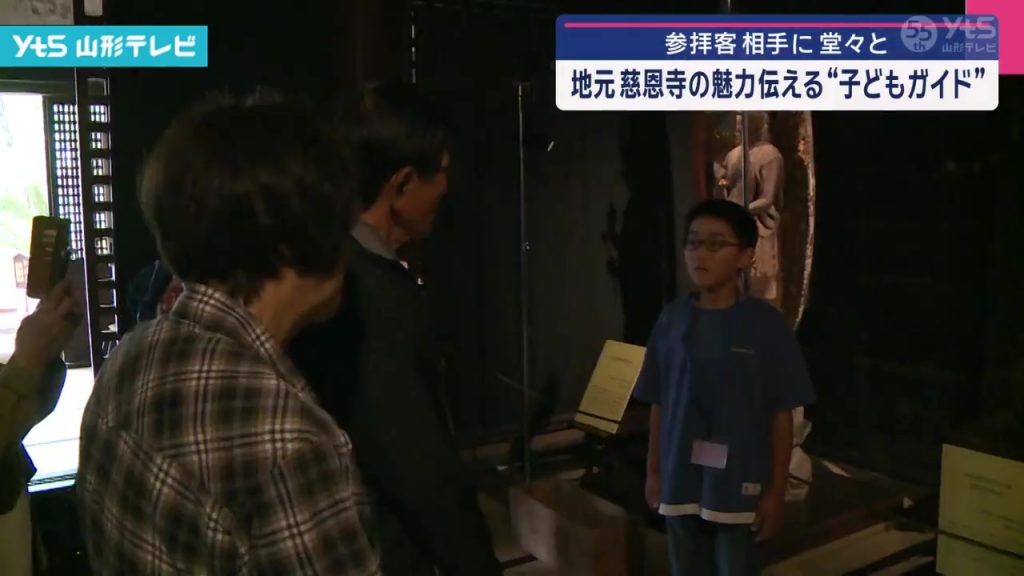 小学生が慈恩寺の魅力を参拝客に伝える子どもガイド