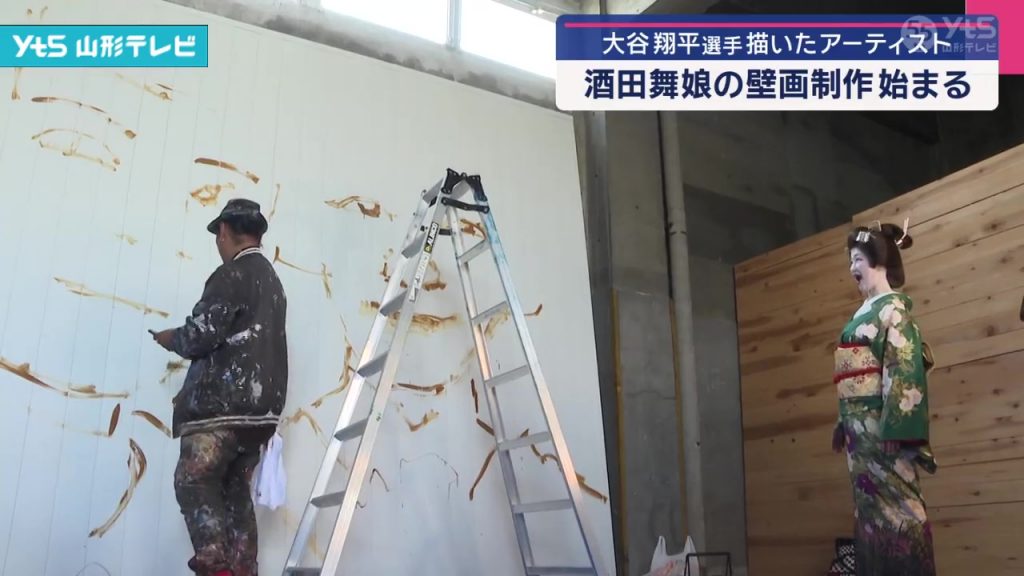 酒田舞娘を描く 世界的な壁画アーティスト来日