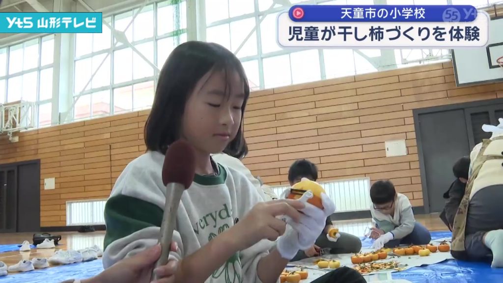 -     天童市の小学生 地元の柿を使った干し柿づくり体験