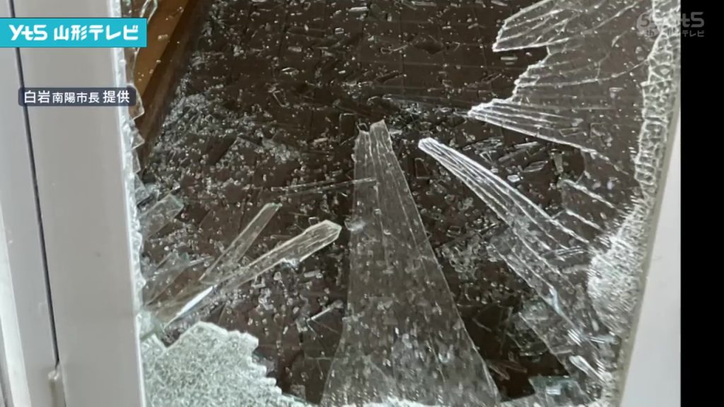 南陽市でクマ 赤湯小の玄関ガラス 割る