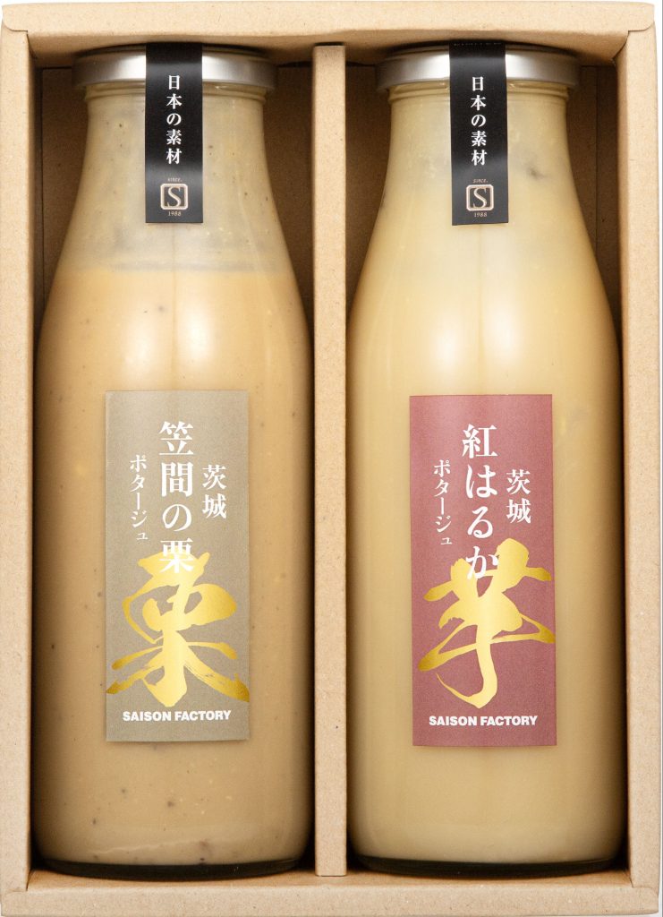 茨城県産笠間の栗と紅はるかを使用した濃厚でなめらかなポタージュの詰合せ。