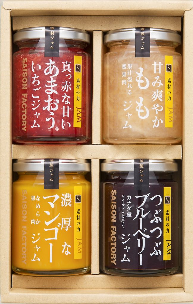 果肉がぎっしり詰まった、果物の風味を味わえる謹製ジャム詰合せ。 デザート感覚でもお召し上がりいただける甘さ控えめのジャムです。