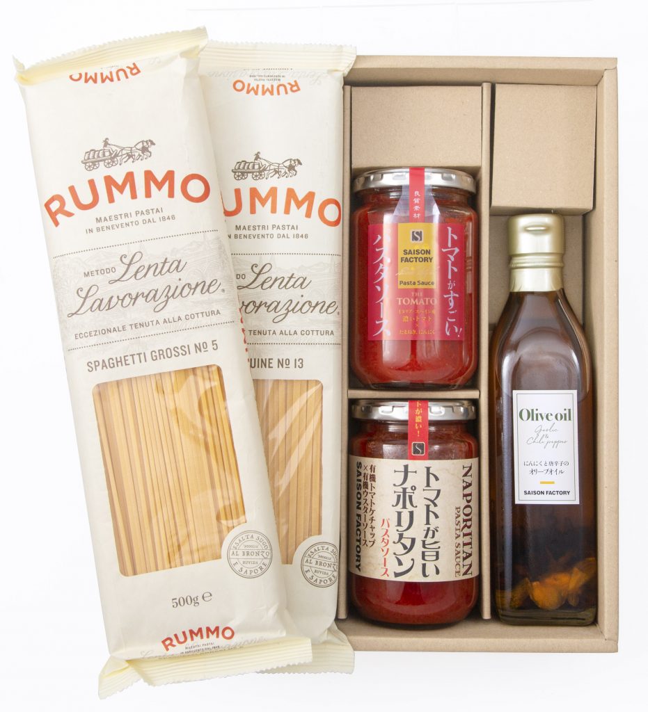 高品質なセモリナのみを使用したコシの強いイタリア産のパスタと、 こだわりのソースを詰合せたパスタを楽しむセット。