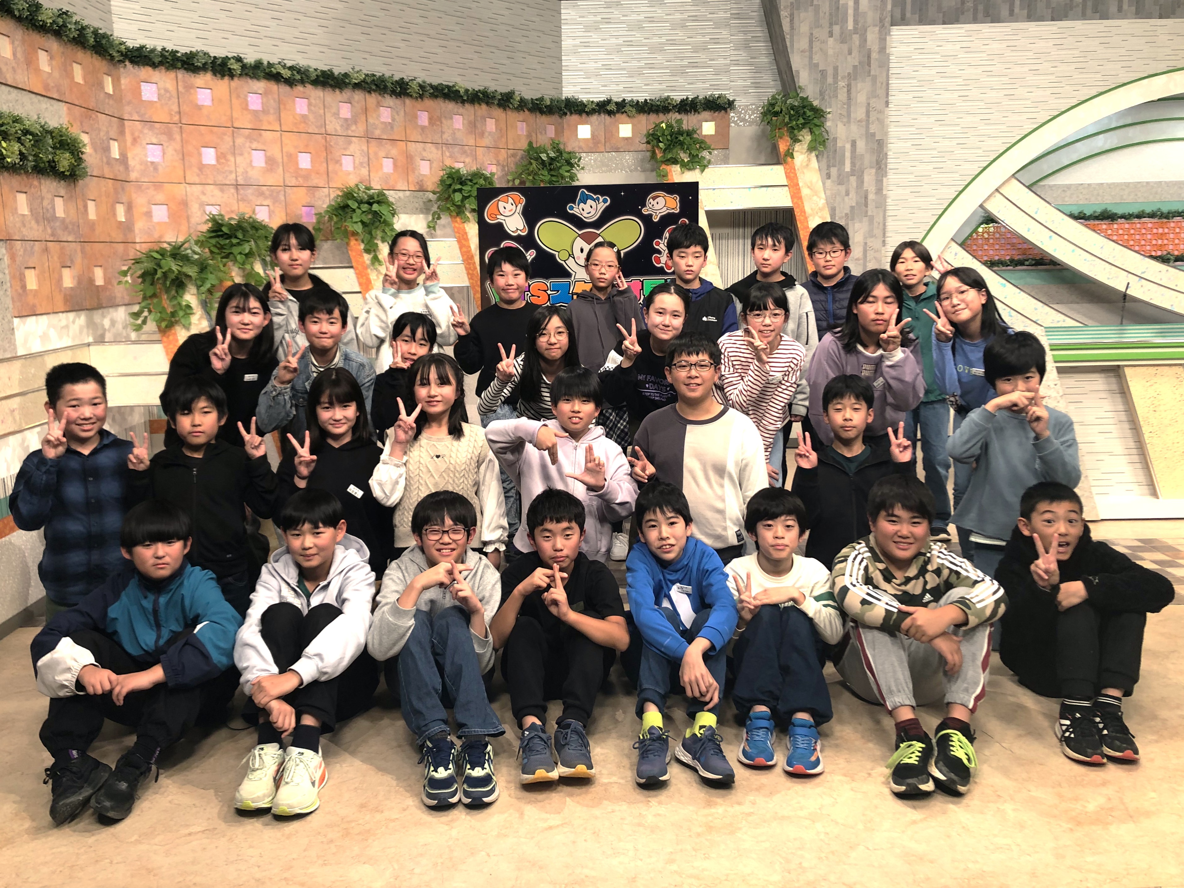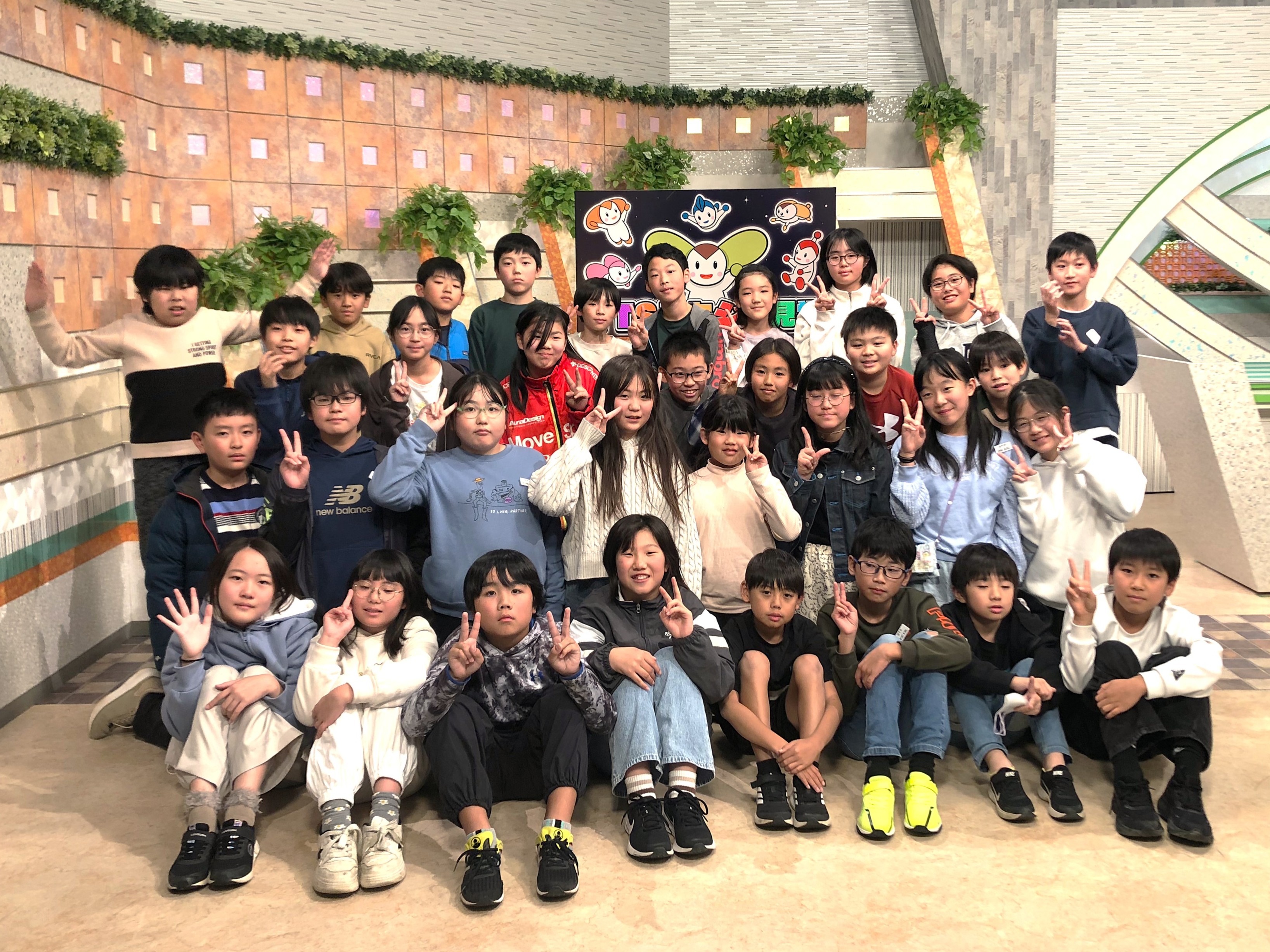 今日は山形市立第十小学校5年生の皆さんが見学に来てくれました。初めてのテレビ局ということで、周りを見渡して目を輝かせていました。会議室ではYTSの説明を真剣に聞きながらメモを取る姿が印象的でしたが、スタジオではカメラに映る自分たちの姿に歓声をあげて大盛り上がり!CM撮影では何度も練習を重ね、元気いっぱいで取り組んでくれました。完成したCMの放送を楽しみにしていてくださいね!